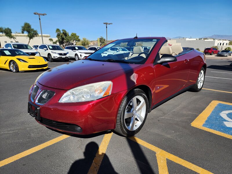 2009 Pontiac G6 GT with ONLY 69,586 MILES! GREAT CONDITION! TWO OWNER! CLEAN CARFAX! NO ACCIDENTS/DAMAGE! WELL MAINTAINED! HARD TOP CONVERTIBLE! Check out this Gorgeous 2009 Pontiac G6 GT! It is finished in a Beautiful Performance Red Metallic Exterior paired with a Light Taupe Leather Interior, providing you with a Clean yet Sporty look. It is Powered by a 3.5L V6 Engine paired with an Automatic Tranmission, providing you with 217 Horsepower and 217 lb-ft of Torque. This 2009 Pontiac G6 GT also comes well equipped with many features, including Remote Keyless Entry, Remote Engine Start/Stop, Automatic On/Off Headlights, Daytime Running Lights, Front Fog Lights, Power Sideview Mirrors, Power Windows with Driver Side Auto Up/Down, Power Door Locks, Variable Intermittent Windshield Wipers, Tilt/Telescoping Steering Column, Analog Gauge Cluster, Driver Information Center (Clock, Exterior Temperature, Oil Life, Trip Monitor), Leather Wrapped Multi-Function Steering Wheel with Mounted Controls, Cruise Control, 6-Way Power Adjustable Front Driver Seat with Lumbar Support, 4-Way Adjustable Front Passenger Seat, Burl Walnut Interior Wood Trim, Leather Wrapped Center Console Arm Rest with Interior Storage Compartment, Dual Visor Vanity Mirrors with Extension Addon, Dual Overhead Map Lights, Interior Ambient Entry/Exit Lighting, Auto-Dimming Rearview Mirror, Power Retractable Convertible Hard Top, Automatic Climate Control with Air Filtration System, Multi-Stage Heated Front Seats, Electric Rear Window Defogger, 8 Speaker Premium Monsoon Surround Sound System, AM/FM/XM Radio, 6 Disc CD/MP3 Changer, Speed Compensated Volume Control, Aux/iPod Inputs, 12V Power Outlet, OnStar In-Vehicle Communication System, Advanced Dual Stage Front Seat Airbag System with Passenger Seat Occupancy Detector, Side Curtain Seat Mounted Airbags, StabiliTrak Stability Control, All Speed Traction Control, Tire Pressure Monitoring System, Anti-Theft Alarm with Electronic Engine Immobilizer, Power Trunk Release, 4 Wheel Disc Brakes with ABS Anti-Lock Braking System, Hydraulic Power Steering, Stainless Steel Exhaust, 4 Wheel Independent Touring Suspension, 18" Machined Face Aluminum Wheels, Integrated Rear Deck Lid Spoiler and so much more! Just in time for Convertible Season! It's almost impossible to find a Power Hard Top Convertible with Low Miles under $10,000! Don't wait around on this one, or it will be gone before you know it! We are a Credit Union Direct Dealer with Over 30 Local and National Credit Unions Available to Provide Competitive Financing Options. TRADE-INS WELCOME!!! We also Offer the Most Comprehensive Extended Service Contracts in the Industry. Nationwide Shipping Services Available.