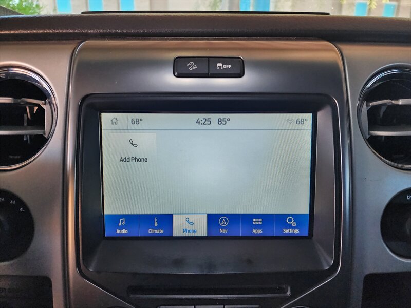 - Equipment Group 402AIncludes rear view camera, trailer brake controller, Sony audio system with single disc CD player and HD radio, and FX Luxury Package with heated and cooled front FX leather bucket seats, 10-way power adjustable driver and front passenger seats, memory settings for drivers seat, power-adjustable pedals, and exterior mirrors, Dual Zone Electronic Automatic Temperature Control (DEATC), black leather-wrapped steering wheel with audio controls, PowerFold heated exterior mirrors with integrated turn signals and painted skull caps, self-dimming drivers side exterior mirror, HID headlamps, reverse sensing system, rear view camera, power sliding rear window with defrost and privacy tint, universal garage door opener, remote start system, and SYNC with MyFord Touch and SYNC services with 4.2 inch LCD Productivity Screen, 8 inch LCD touch-screen in center stack, media hub with USB ports, SD card reader, audio/video input jacks, and 5-way steering wheel control switch.