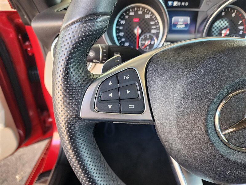 - AMG Line ExteriorIncludes AMG body styling, chrome diamond block grille, galvanized shift paddles, and 18 in. AMG multi-spoke wheels.