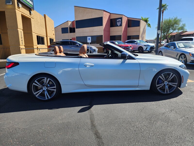 2022 BMW 430i with ONLY 18,707 MILES! EXCELLENT CONDITION! ONE OWNER! WELL MAINTAINED! UNDER BMW FACTORY WARRANTY! If you're looking for your Next Convertible but want the Perfect Mix of Comfort, Performance, Technology, and Styling? Then look no further than this 2022 BMW 430i finished in a Beautiful Mineral White Metallic Paint paired with a Cognac Leather Interior that provides a Clean yet Sporty look. It is Powered by a Robust 2.0L Turbocharged Inline 4 Engine paired with an 8-Speed Steptronic Automatic Transmission, providing you with 255 Horsepower and 294 lb-ft of Torque. In traditional BMW fashion this 2022 BMW 430i comes well equipped with many features like Remote Comfort Access Keyless Entry, Remote Engine Start/Stop, Push Button Engine Start/Stop, Automatic On/Off LED Headlights with Auto Leveling Capability, Daytime Running Lights, Automatic High Beam Assist, Power Heated Sideview Mirrors with Auto-Dimming & Power Folding Capability, Power One Touch Express Up/Down Windows, Power Door Locks, Automatic Rain Sensing Windshield Wipers, Tilt/Telescoping Steering Column, 12.3" Full-Color Customizable Digital Gauge Cluster & Driver Information Center, Leather Wrapped Multi-Function Steering Wheel with Mounted Controls, Paddle Shifters, Cruise Control, 12-Way Power Adjustable Front Sport Seats with Lumbar Support & Manual Thigh Extension, Driver Seat/Mirror Position Memory System, Dual Zone Automatic Climate Control, Second Row Air Vents with Independent Temperature Controls, Multi-Stage Heated Front Seats, Heated Steering Wheel, Aluminum Tetragon Interior Trim, Leather Wrapped Center Console Armrest with Interior Storage Compartment, Dual Illuminated Visor Vanity Mirrors, Dual Interior Map Lights, Multi-Color Interior Ambient Lighting, Auto-Dimming Rearview Mirror, HomeLink Universal Garage Door Opener, Triple Layer Acoustic Power Convertible Top, 10.25" Full-Color Touchscreen BMW iDrive Infotainment System with Center Console Mounted Rotary Controller, 12 Speaker Premium Surround Sound System, AM/FM/XM HD Radio, Handsfree Bluetooth Phone & Audio Streaming Capability, Apple CarPlay/Android Auto Connectivity, Hard Drive Navigation, Advanced Voice Command System, Wireless Phone Charger, USB/Aux Inputs, 12V Power Outlet, Customizable Drive Modes (Eco Pro, Comfort, Sport, Individual), Front & Rear Sonar Parking Sensors, Rearview Back Up Camera with Guide Lines, Active Blind Spot Monitor, Rear Cross Traffic Detection, Forward Collision Warning, Lane Departure Warning, Advanced Multi-Stage Airbag System, LATCH Child Seat Anchor System, Speed Limit Information Display, Electronic Parking Brake with Auto Hold Function, ECO Engine Start/Stop, Tire Pressure Monitoring System, 50/50 Split Fold Flat Rear Seats, Power Release Rear Trunk, Anti-Theft Perimeter Alarm with Engine Immobilizer and so much more! In addition to all of those features, this 2022 BMW 430i has over $8,000 in additional Upgraded Options, including the $3,200 M Sport Package (Shadowline Exterior Trim, M Sport Steering Wheel, Variable Sport Steering, Aluminum Tetragon Interior Trim, M Sport Performance Suspension, M Sport Exterior Aerodynamic Kit, Increased Top Speed Limiter), $1,300 Premium 2 Package (Comfort Access Keyless Entry, Lumbar Support, Multi-Stage Heated Front Seats, Heated Steering Wheel), $750 Live Cockpit Pro with Navigation, $650 M Sport Brakes with Blue Brake Calipers, $600 19" M Sport Double Spoke Wheels, $550 Mineral White Metallic Premium Paint, $400 Shadowline Package (Extended Shadowline Trim, Black Mirror Caps), $350 SensaTec Dashboard and the $300 Remote Engine Start/Stop just to name a few! Don't wait around on this one, or it will be gone before you know it! We are a Credit Union Direct Dealer with Over 30 Local and National Credit Unions Available to Provide Competitive Financing Options. TRADE-INS WELCOME!!! We also Offer the Most Comprehensive Extended Service Contracts in the Industry. Nationwide Shipping Services Available.